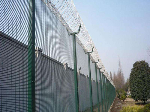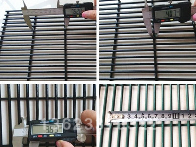 監(jiān)獄防攀爬密紋網(wǎng)采用358密紋網(wǎng)制作,又稱為358護(hù)欄網(wǎng)或358監(jiān)獄密紋隔離網(wǎng)。 358防攀爬密紋網(wǎng)在防護(hù)設(shè)施中與片狀刺繩結(jié)合,堅(jiān)固實(shí)用,孔小,能很大程度上防止人或工具攀爬,被廣泛的應(yīng)用于監(jiān)獄、看守所、拘留所、戒毒所、未管所、軍事、機(jī)場、安全部隊(duì)、輕軌、城際列車、邊境等的重要隔離措施。